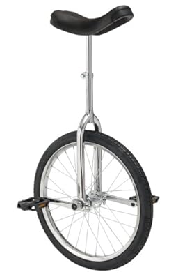 Deluxe 20-inch unicycle with oversized, chrome-plated steel frame . Cushioned seat with scuff-guard protection for comfort and durability . Cotterless crank arms and full-sized nylon pedals with chromoly spindles . Saddle is adjustable up, down, forward, and backward for maximum comfort . New and improved wheel mounts; sealed bearings withstand heavy loads .