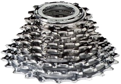 Five largest sprockets are mounted on two light alloy carriers to reduce weight and increase sprocket stiffness. Drilled out sprockets for less weight. Lightweight 9-speed sprockets provide a wider gear choice.