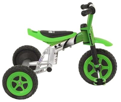 The Kawasaki TrikeIt's features Motocross-like trike for the newest cyclist in your family . Shock absorber on the rear end, safety steering stop . Fat plastic tires, wide non-slip pedals, padded seat and handlebars . Frame made of plastic, steel handlebars . Frame covered by lifetime warranty; one-year warranty on parts . .your can buy lowprice now Click below Choose from store .Save Now Today.
