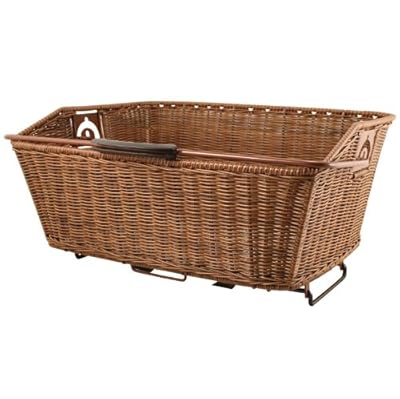 Quick release bracket allows basket to mount to most rear racks . Fast and easy removal when not in use . Carrying handle for easy off bike use . Rattan style weave for good looks . Dark brown .